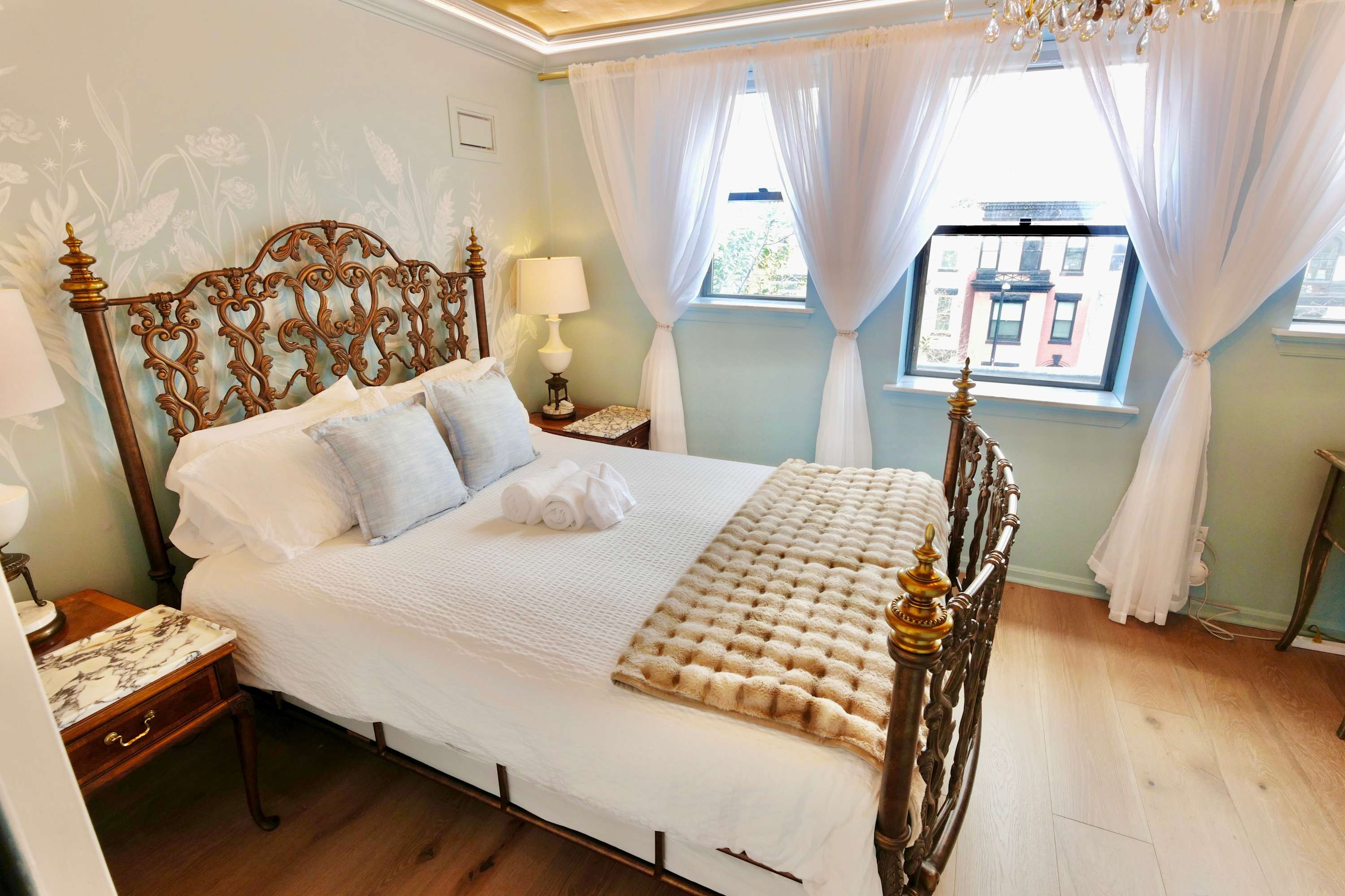 Welcome to your artist penthouse residence, perched atop a beautiful traditional rowhome in the heart of the city. Inside, ornate mirrors, calming original murals, and soft mood lighting make evenings feel more like a boutique hotel than a typical rental.